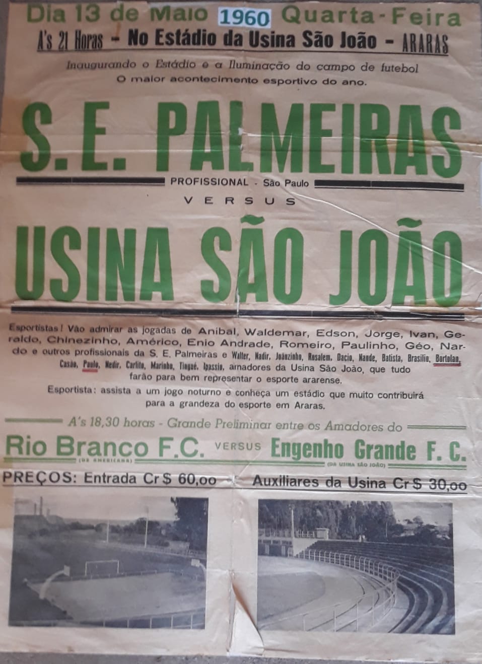 | Nome: Estádio Engenho Grande Capacidade: 5.000 Endereço: Usina São João - Araras (SP) Inauguração: 13/05/1959 Primeiro jogo: S.E.R.Usina São João 0 x 6 S.E.Palmeiras Primeiro gol: Américo (Palmeiras) Recorde de público: 10.373 (União São João 1 x 2 São Paulo - 08/05/1988) |