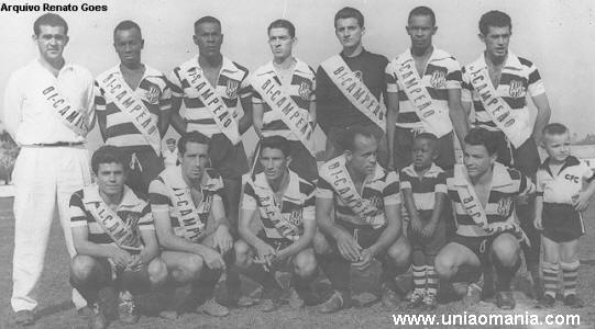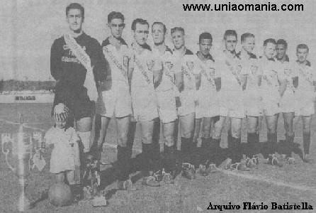 Equipe Vice-campeã do Interior de 1956 Em pé da esq.p/dir.: Daltro (téc.), Émerson, Zulu, Note, Ismael, Pedro, Linguiça, Basílio e Armando Giacomini. Agachados: Sebastião, Chops, Eolinho, Baltazar, Otavinho e Rubens. |