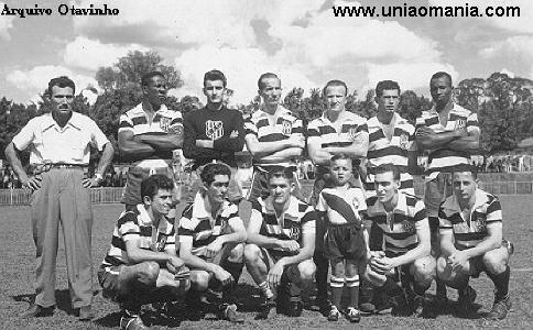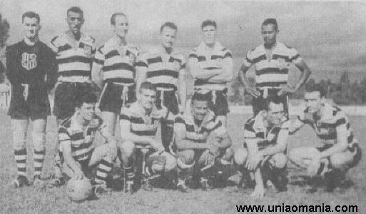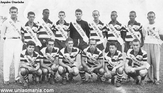 Equipe de 1955 Em pé da esq.:p/dir.: Zulú, Ismael, Pedrinho, Note, Émerson e Lingüiça. Agachados: Sebastião, Osiris, Eolinho, Rubens e Biguá. |